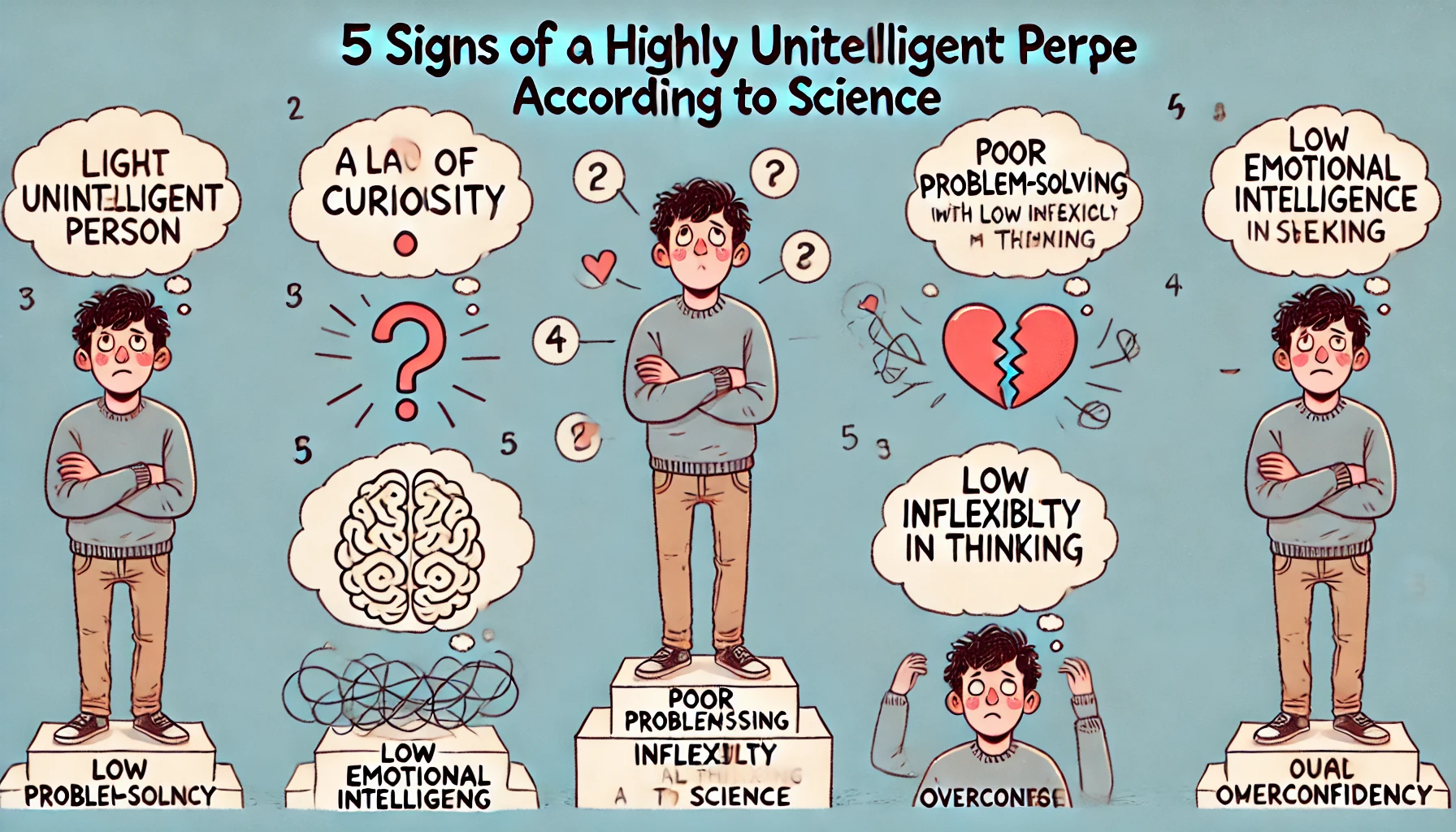 Understanding the signs of lower intelligence can help identify areas for personal development and educational intervention. Traits such as a lack of curiosity, poor problem-solving skills, low emotional intelligence, inflexibility in thinking, and overconfidence in one’s abilities can all be indicators of lower cognitive functioning. Recognizing these signs can promote better self-awareness and encourage efforts to improve intellectual and emotional capabilities.